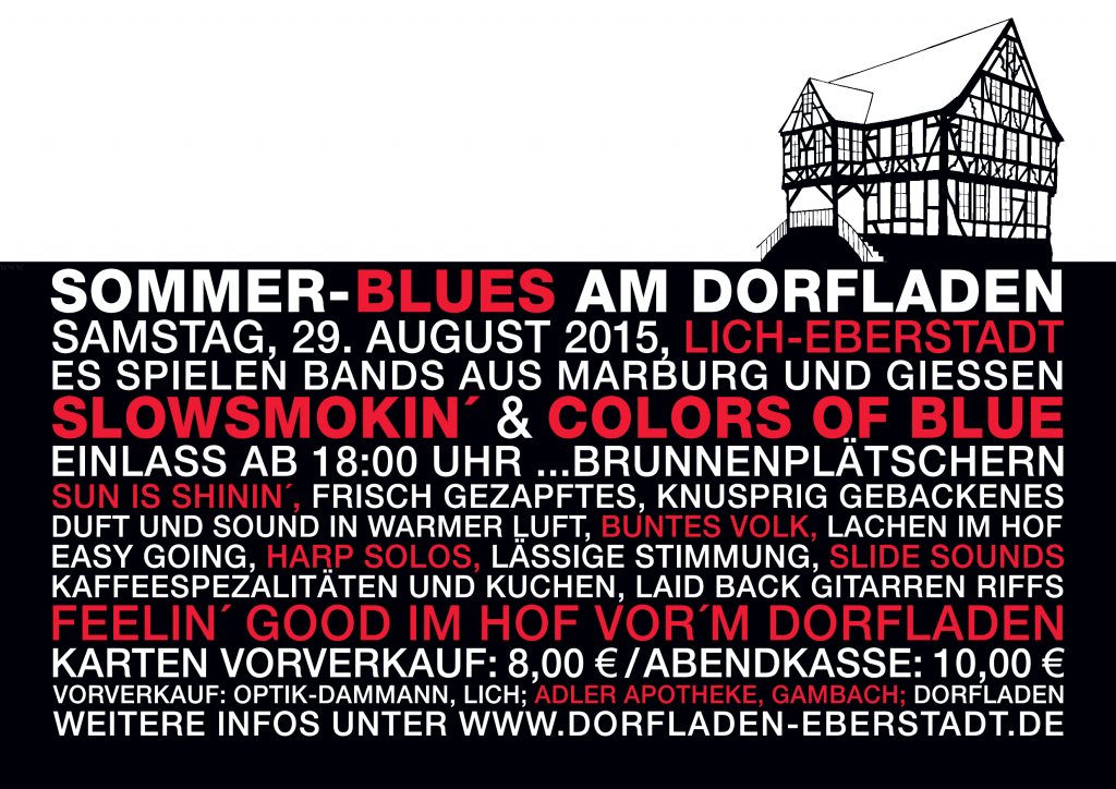 Welch eine Premiere in Eberstadt, ein begeistertes Publikum chillte gemütlich im Innenhof vor dem Dorfladen zu den musikalischen Klängen von Slowsmokin‘ und Colours of Blue.