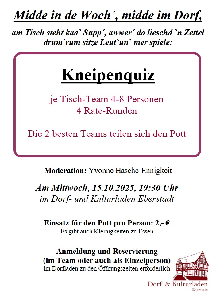 Mittwoch 15.10.2025 um 19:30 Uhr im Dorfladen Eberstadt