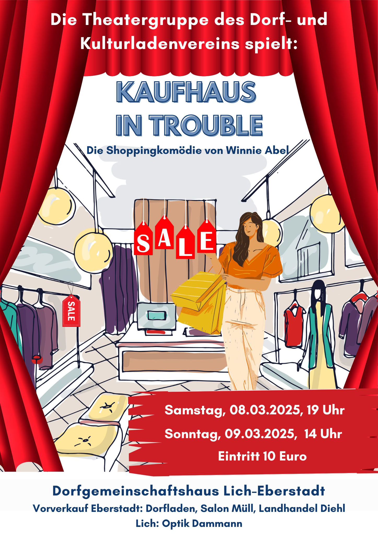 Die Theater-Gruppe des Dorf- und Kulturladen Lich-Eberstadt e.V.  zeigt ihr neues Stück „Kaufhaus in Trouble“.